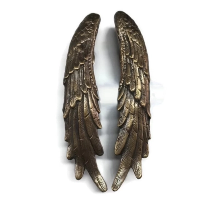 2 CAST heavy brass large 13″ inch magnificent Large 33 cm Angel Wings Brass Door Handle Bronze Patina Old Style Door Pull Entry KS