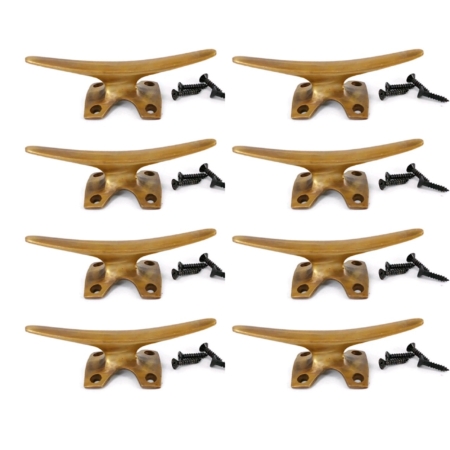 8 small CLEAT tie down heavy brass boat cars tieing rope hooks 4″ cleats ship chandlers bronze patina