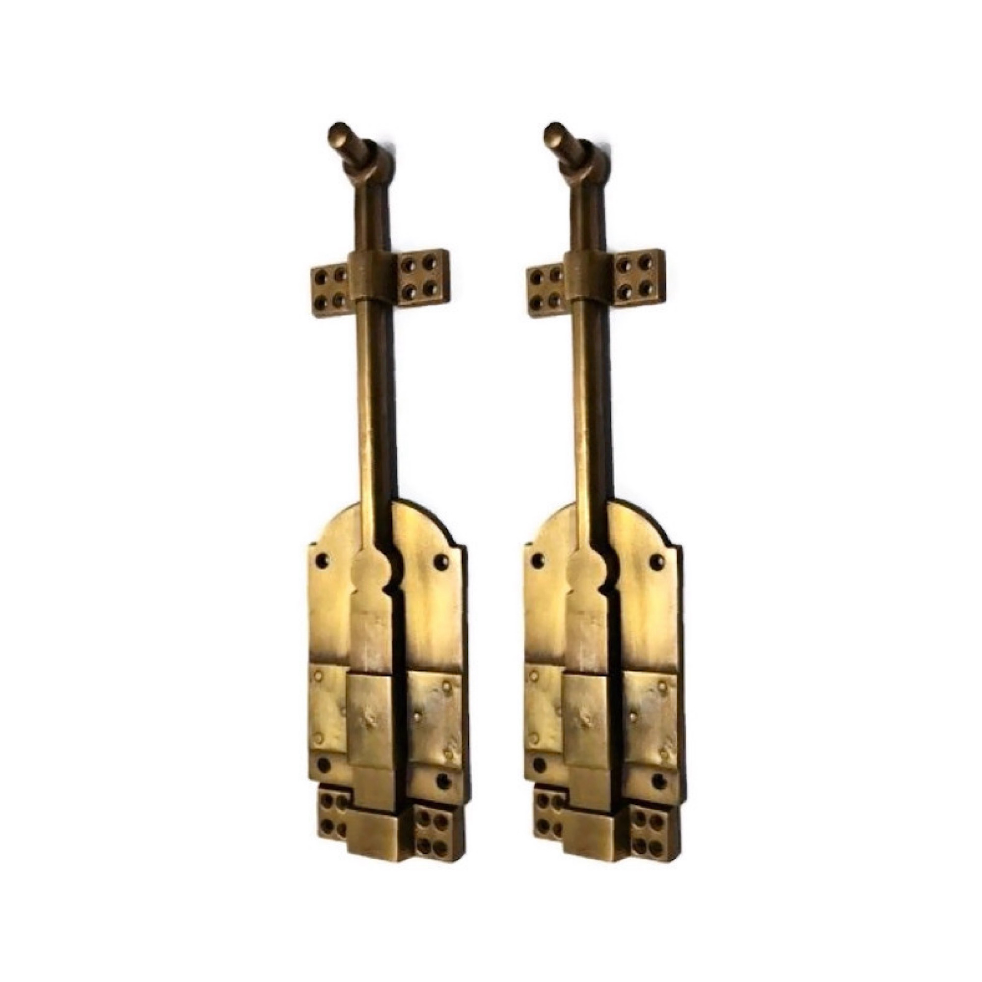 2 heavy 12″ large Bolts french old style doors very heavy solid aged brass flush 30 cm Bronze patina