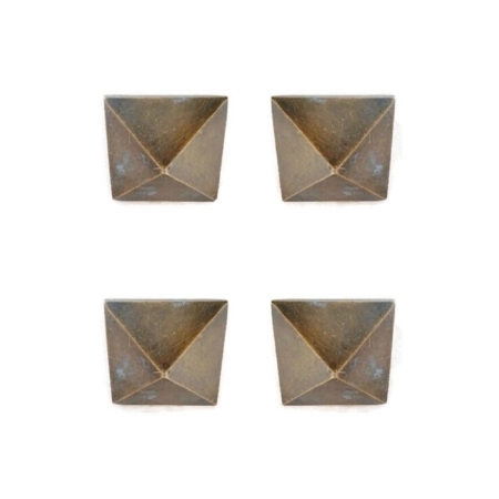 4 medium Door studs decoration square corner vintage solid 100% brass heavy 1.1/2″ bronze patina 3.8 cm across