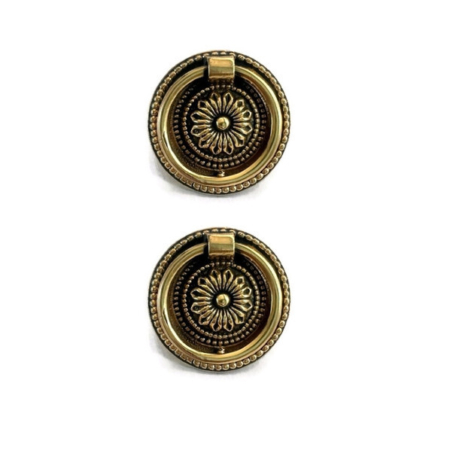 2 large version Vintage Brass 2″ Victorian 2759 POLISHED 50mm Floral Sheraton Round Ring Pull Cabinet Drawer Dresser Handle round Knob Pulls bronze look aged