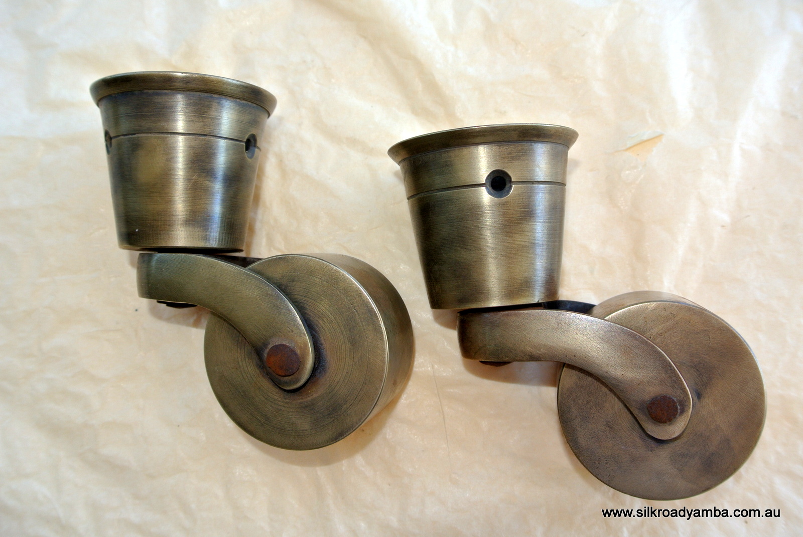 2 solid brass large 3.1/2″ high 9 cm cup Screw 907 Castor Wheel Chair Table Solid Heavy Brass Old Style Look inside top 44 mm ILYA