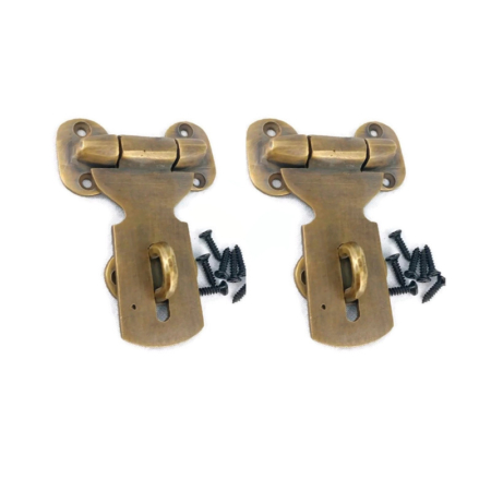 2 Small HASP & STAPLE box door cupboard Padlock solid pure brass heavy lock works solid brass 4″ antique style