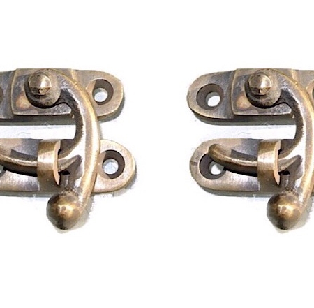 2 heavy Nice tiny small box Latch 40 mm catch solid pure brass aged doors trinket vintage old antique style jewellery cabinet lock hasp