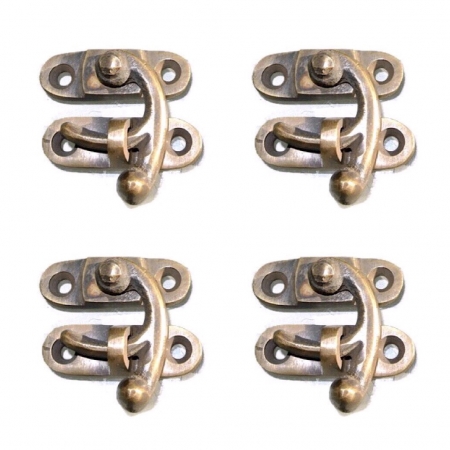 4 heavy Nice tiny small box Latch 40 mm catch solid pure brass aged doors trinket vintage old antique style jewellery cabinet lock hasp
