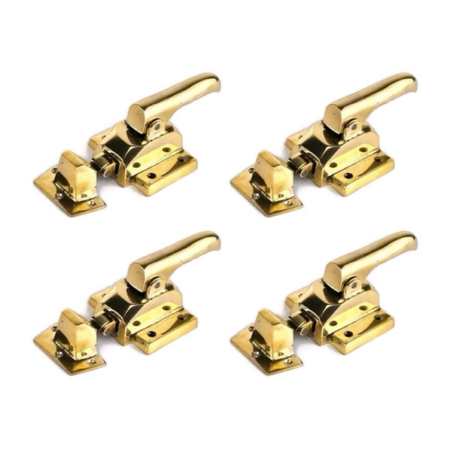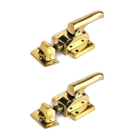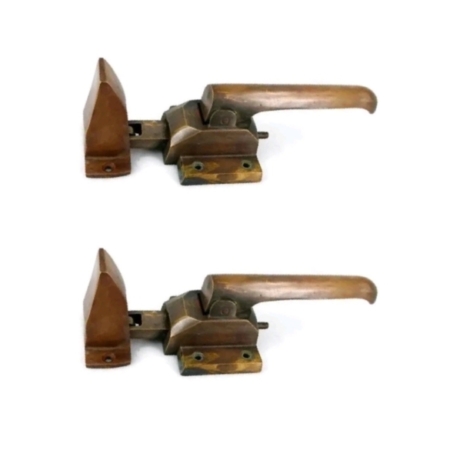 2 sets large polished Rare Ice Box Catch offset rebated Lever action Heavy Solid Brass lead light kitchen cabinet ice box chest hand made 8″ square