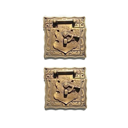 2 small Nice box Latch catch solid 100% brass furniture doors 3 ” engraved square jewellery box