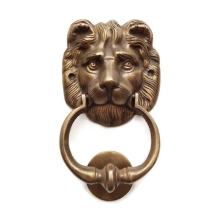 Polished LION head heavy front Door Knocker real solid pure brass vintage antique style house 7″ hand made cast pull banger