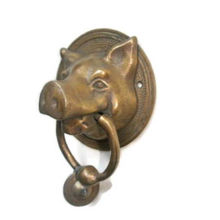 MEDIUM VERSION Solid PIG heavy 4” inch pure Brass 10 cm Door Knocker PIG Head ring pull in mouth Vintage Front Door Knocker Door Decor