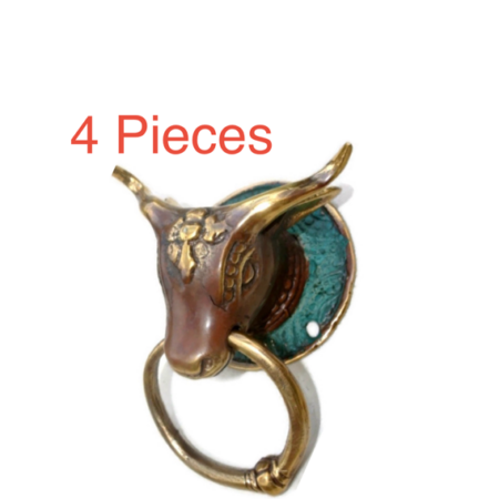 4 small bull head heavy Door handle solid brass vintage antique style ring 7 cm hook Bronze patina