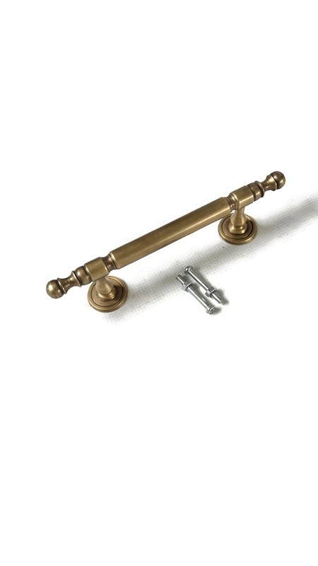 button Ribbon Style PULL 6″ inches Brass Handles Polished Brass Finish cabinet kitchen grabs removable bolt fixing