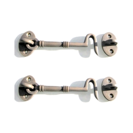 2 medium cabin hooks door catch 6 ” plain period HOOKS 15 cm solid heavy brass furniture vintage age old style heavy 4.1/2″ old style bronze patina