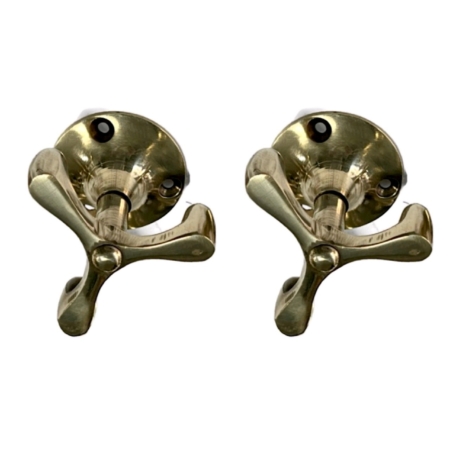 2 small Vintage spinning deco solid BRASS wardrobe HOOKS, kitchen, ceiling hooks, coat bag hooks, cabinet hardware, antique brass