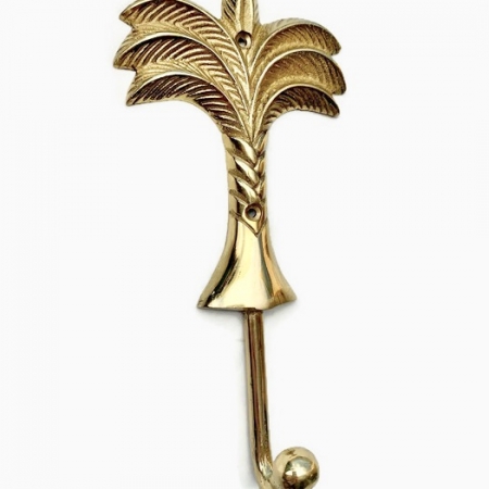 large Palm tree HOOK 8 ” long aged POLISHED solid real heavy BRASS 20 cm long tropical old vintage style natural hand made heavy hanger screw