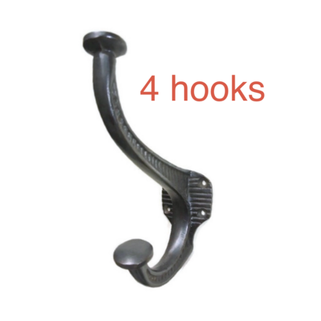 4 large PIG COAT HOOKS solid age brass old vintage old style 13 cm hook aged bronze look beach house wall hang