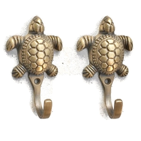 2 small TURTLE COAT HOOKS solid age brass old vintage old style hook heavy 3″ hand made hanger 8 cm screws hall stand