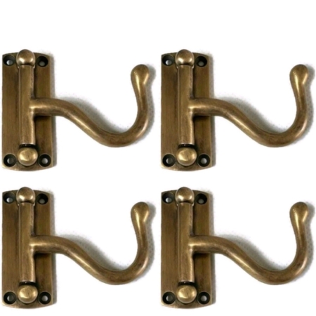 4 solid brass 5.1/4″inch curly Antique vintage old Style coat hangers heavy Hooks 14cm Wall Mounted hand cast Victorian period heavy hooks