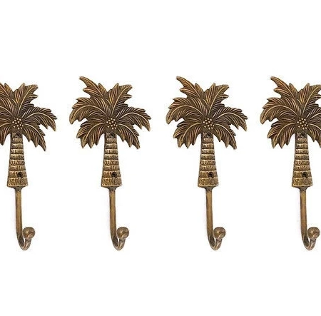 4 hooks large brass large Palm Tree Coat Solid Brass Hook polished Old Style 19 cm Wall Mounted Beach hand cast 7.1/2″ inch many finishes