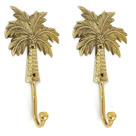 2 large brass large Palm Tree Coat Solid Brass Hook Old Style 19 cm Wall Mounted Beach hand cast 7.1/2″ inch Antique Brass