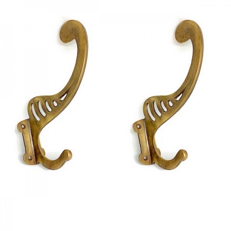 2 period large 251 watson COAT HOOKS solid brass old style 6″ Deco hall stand vintage style heavy bronze oxidized patina 16 cm