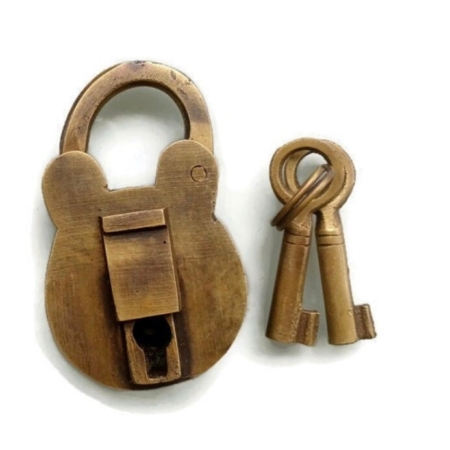 small padlock Vintage stye solid brass 2 keys heavy lock bridge 60 mm box furniture Antique Vintage style 2.1/2″ skeleton Keys Safe Lock