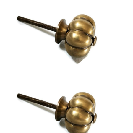 2 small heavy 1.1/2″ inch wide pulls handles knob GARLIC SHAPE antique style solid pure brass vintage drawer knobs 36 mm kitchen antiques