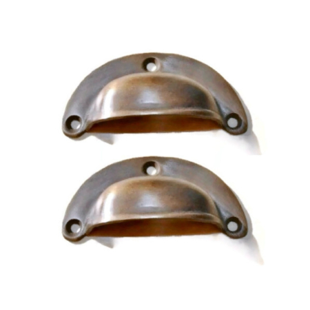 2 small version 3.1/4″ shell shape pulls handles antique watson 3000 solid brass vintage old replace drawer 82 mm