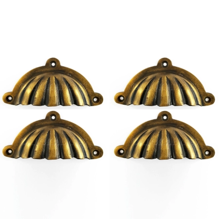 4 small version 3.1/4″ shell shape pulls handles antique watson 3000 solid brass vintage old replace drawer 82 mm