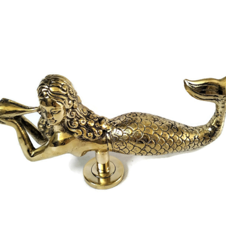 MERMAID door handle PULLS heavy solid heavy Brass bronze patina 27cm shell antique sea side patina grab pulls