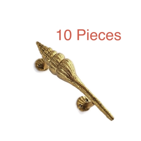 10 brass small version 8″ inch Shell Shape Curvy seaside heavy Brass aged Door Pull Handle Grab 20 cm