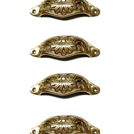 4 engraved pattern 10 cm shell shape watson 3050 pulls handles antique solid brass vintage old replace drawer 105mm polished brass