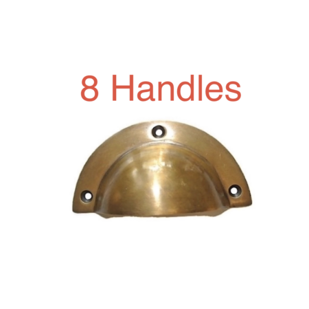 8 POLISHED shell shape pulls handles antique solid brass vintage old replace drawer kitchens drawers