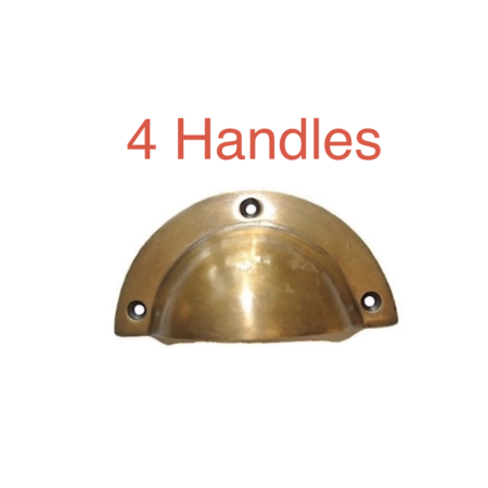 4 shell handles PULL aged solid Brass PULL knob kitchen cast 10cm screws 4″ Bronze patina 3 screw hole