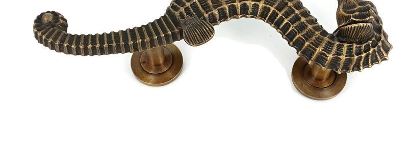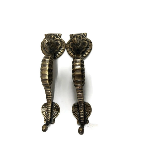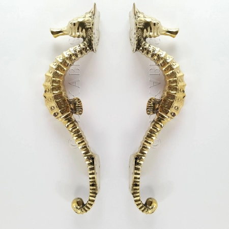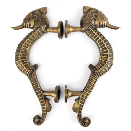 2 pieces Brass Small 20 cm Seahorse Door Handle Pull Antique Brass Old Style Grab unique hand done many finishes 8″ inch seaside