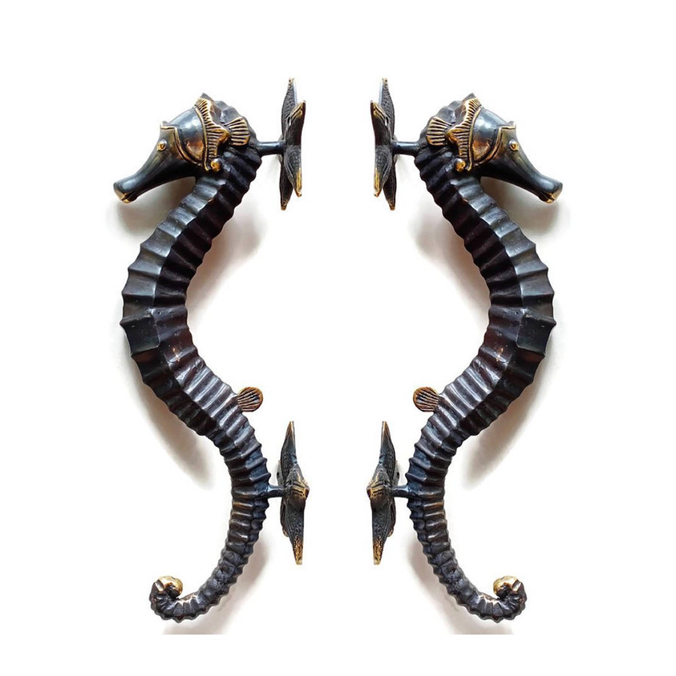 2 cast brass Massive 20″inch long Solid very heavy Brass aged finish SEAHORSE Door handle pull ILYA face fixing 50cm bronze colour seaside beach outdoor gate house