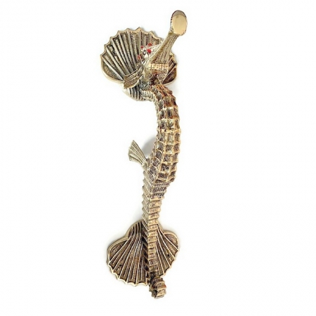 2 solid Brass Seahorse DOOR Handle 12 ” inch very heavy ILYA Large cast heavy Beach old Style Bronze 30 cm cast aged brass patina face fix