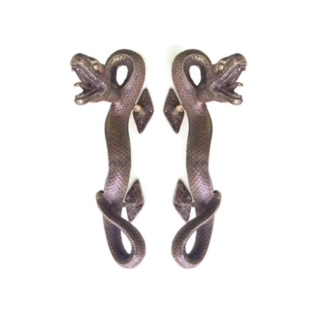 2 sets 4 handles 14″ inch cast very heavy pair grabs face fixing door rattle snake Brass Large Python 36cm Curly body Old Style Pulls hand made