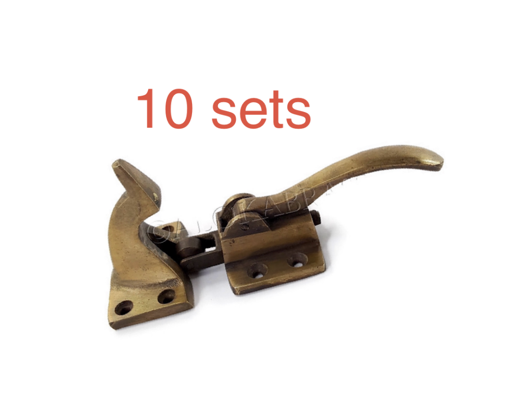 10 complete sets 1/2” inch offset version rare ICE BOX CATCH solid BRASS lever aged antique deco style solid pure brass heavy offset 4″ left & right vintage old aged style hand made cast