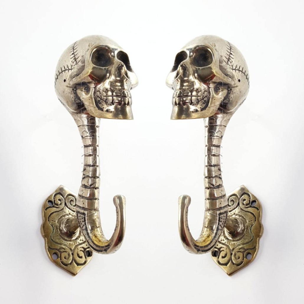 brass 2 small 5″ version skull-shaped hooks