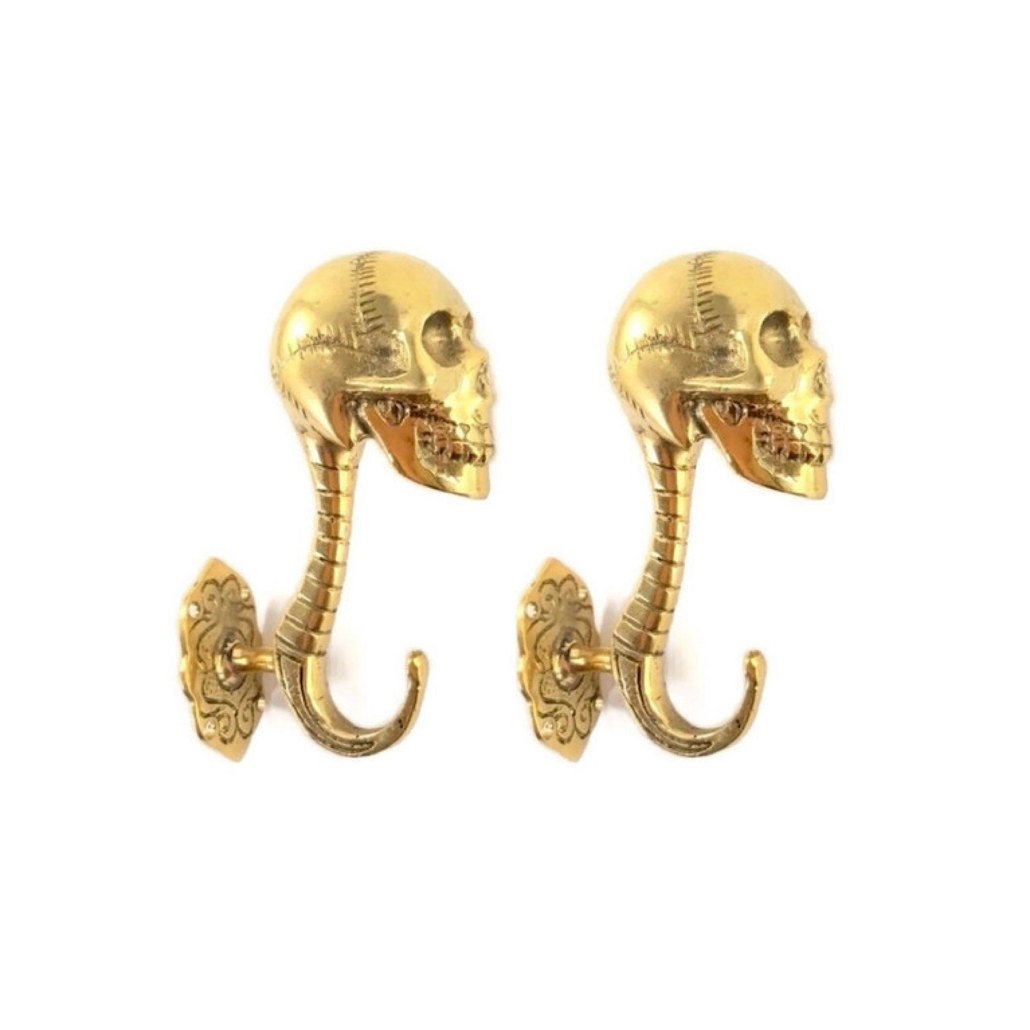 2 brass hooks large version Skull shaped hooks