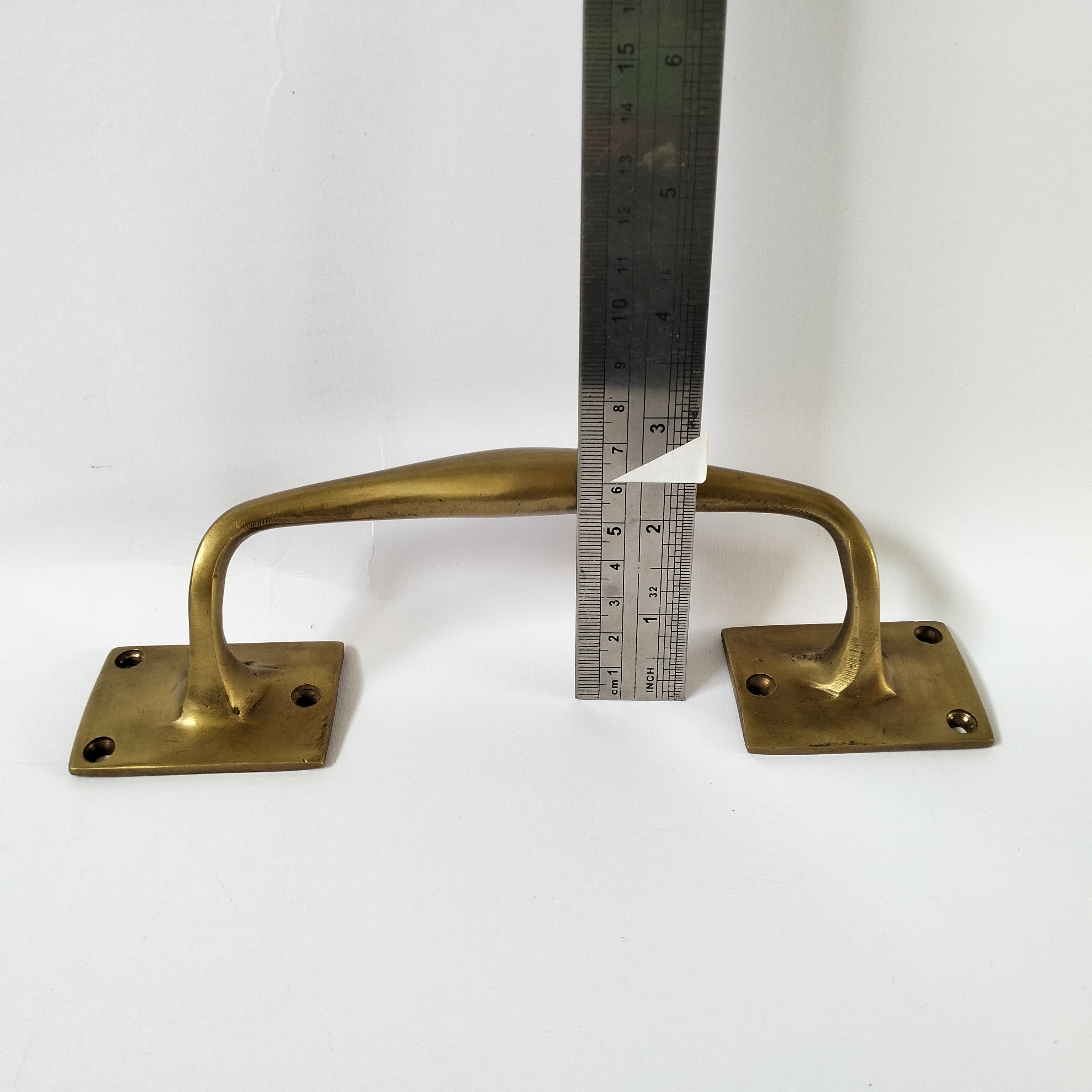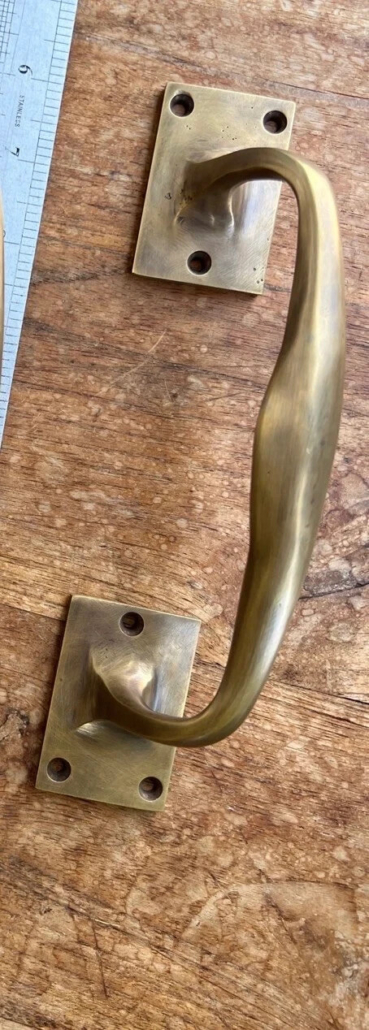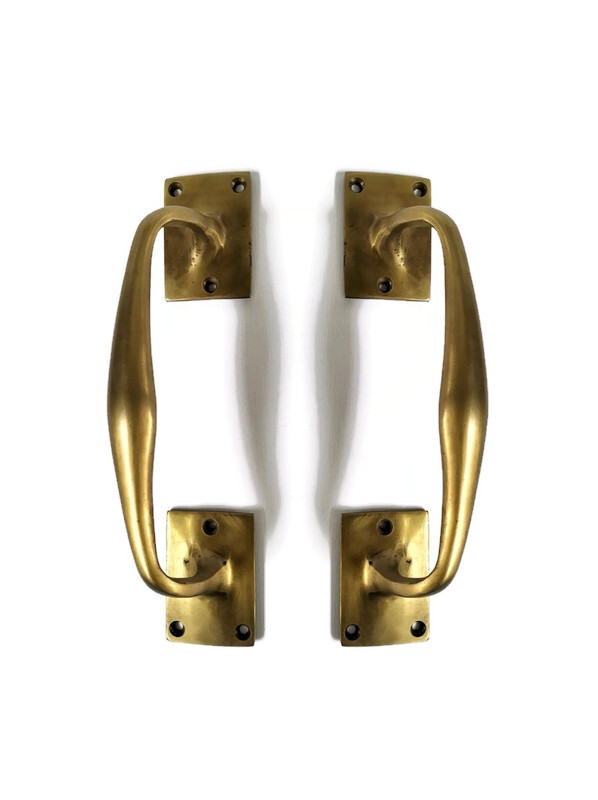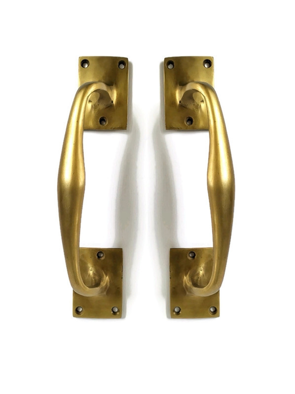 2 brass old vintage style door handle pulls made from solid brass 8.3/4″