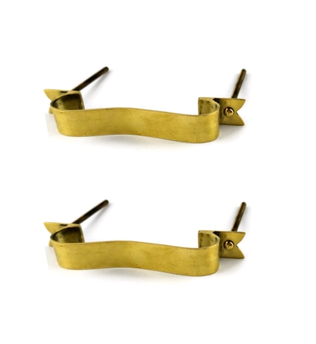 2 Ribbon Style PULL 6 inches Brass Handles Polished Brass Finish