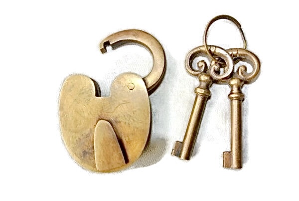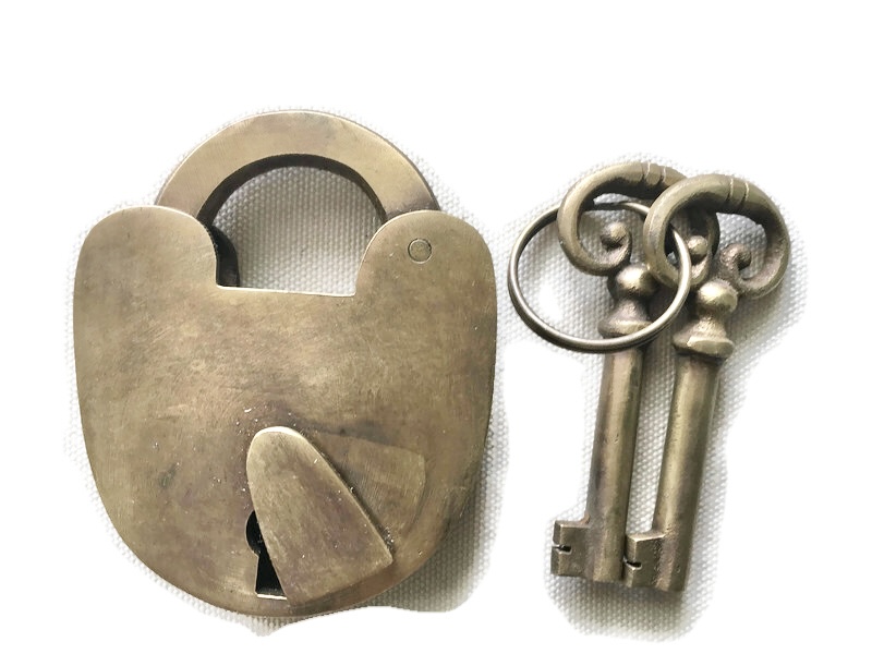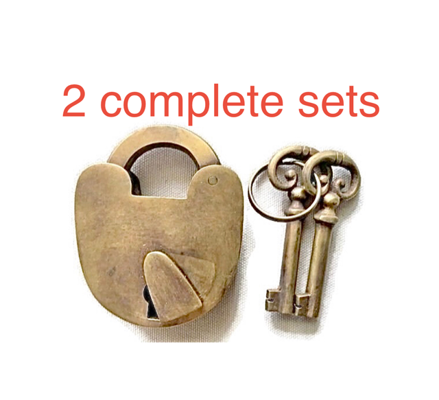 2 complete sets Aged 3″ Vintage style antique watsonbrass CODE100 old look Padlock solid pure brass 4 keys heavy lock works Antique Vintage style SKELETON Keys Safe Lock