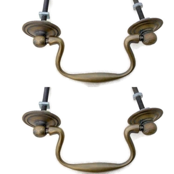 2 Large hinges vintage aged style solid 100% Brass DOORS BOX restore heavy long...