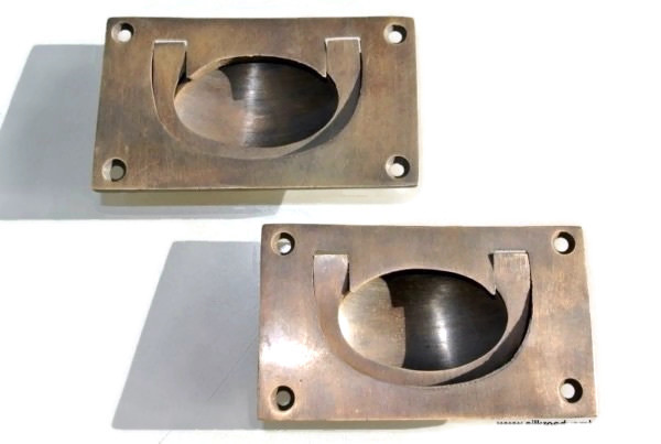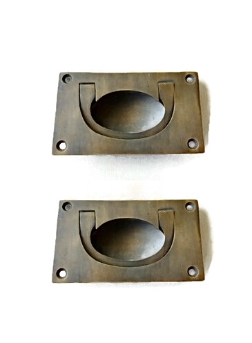 2 solid brass Heavy Recessed Pull Handle cast Box sea chest Wide Pulls Trunk...