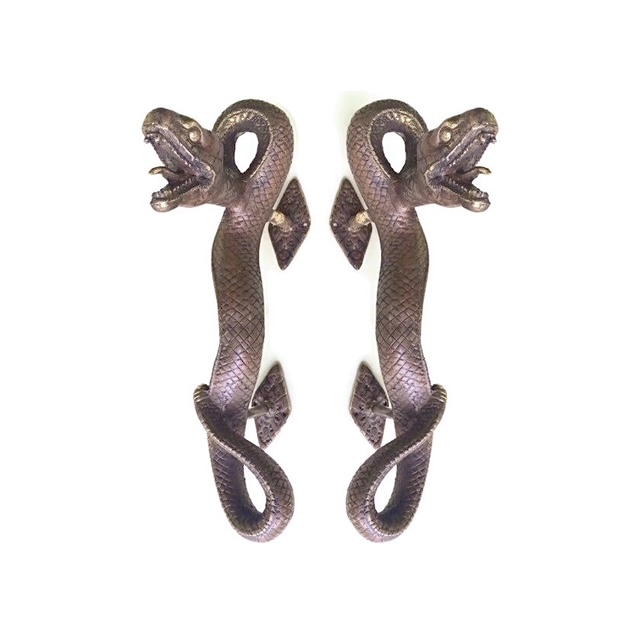 2 hollow SNAKE python brass door PULL old style polished heavy house PULL handle 35cm stunning hand made