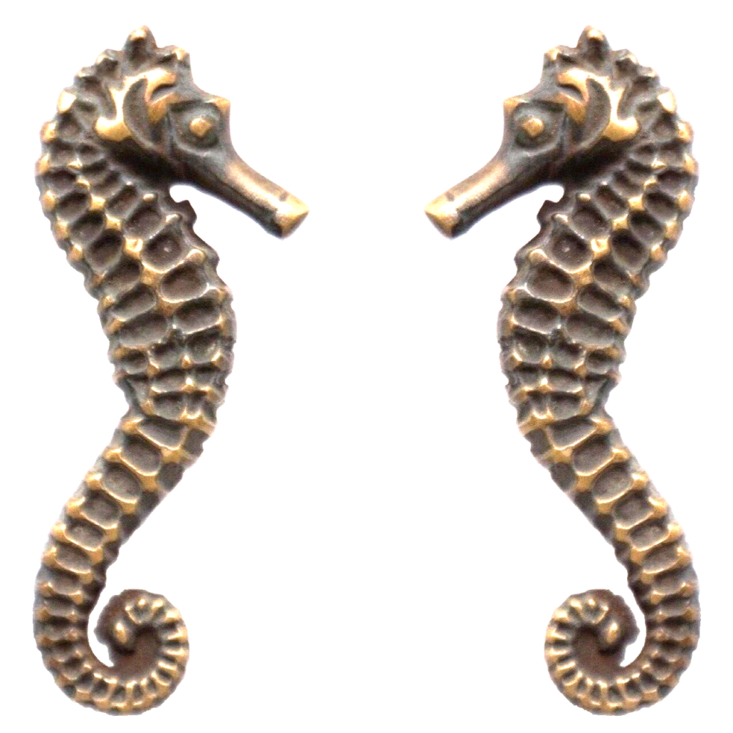 2 large 6″ inch version SEAHORSE solid 100% brass KNOBS mount beach old style look 15cm handle bronze look grab pulls kitchens cabinets beach