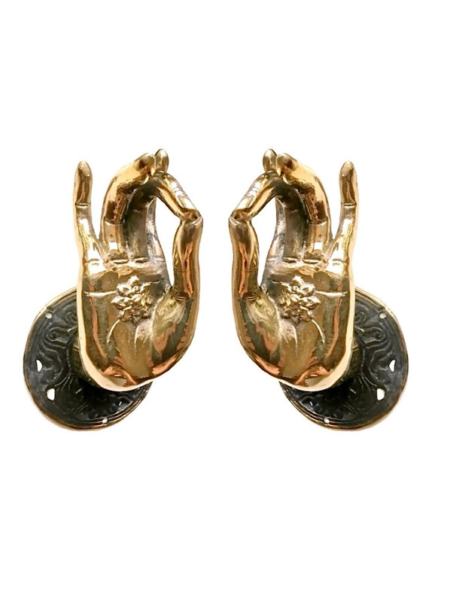 2 large BUDDHA Pull handles LOTUS hand aged patina hollow brass door old style 10 cm back plate knob gate bronze colour fingers hook