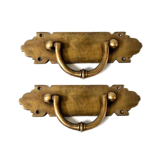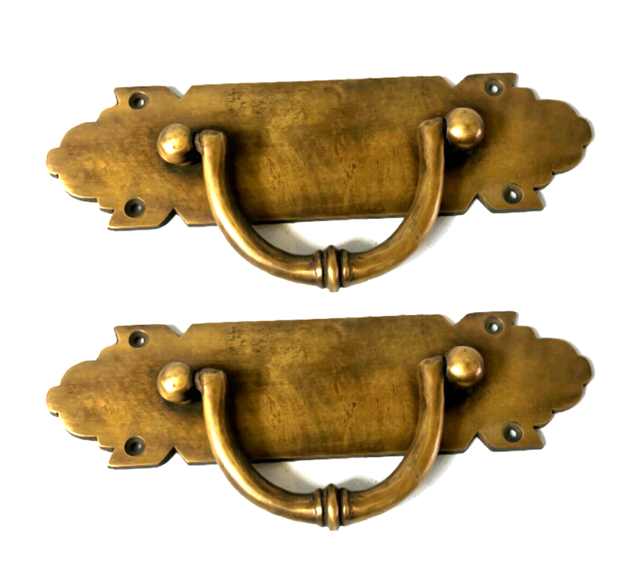2 large heavy antique style DRAWER PULLS BOX handles 9″ brass