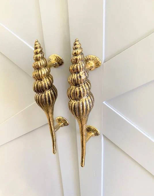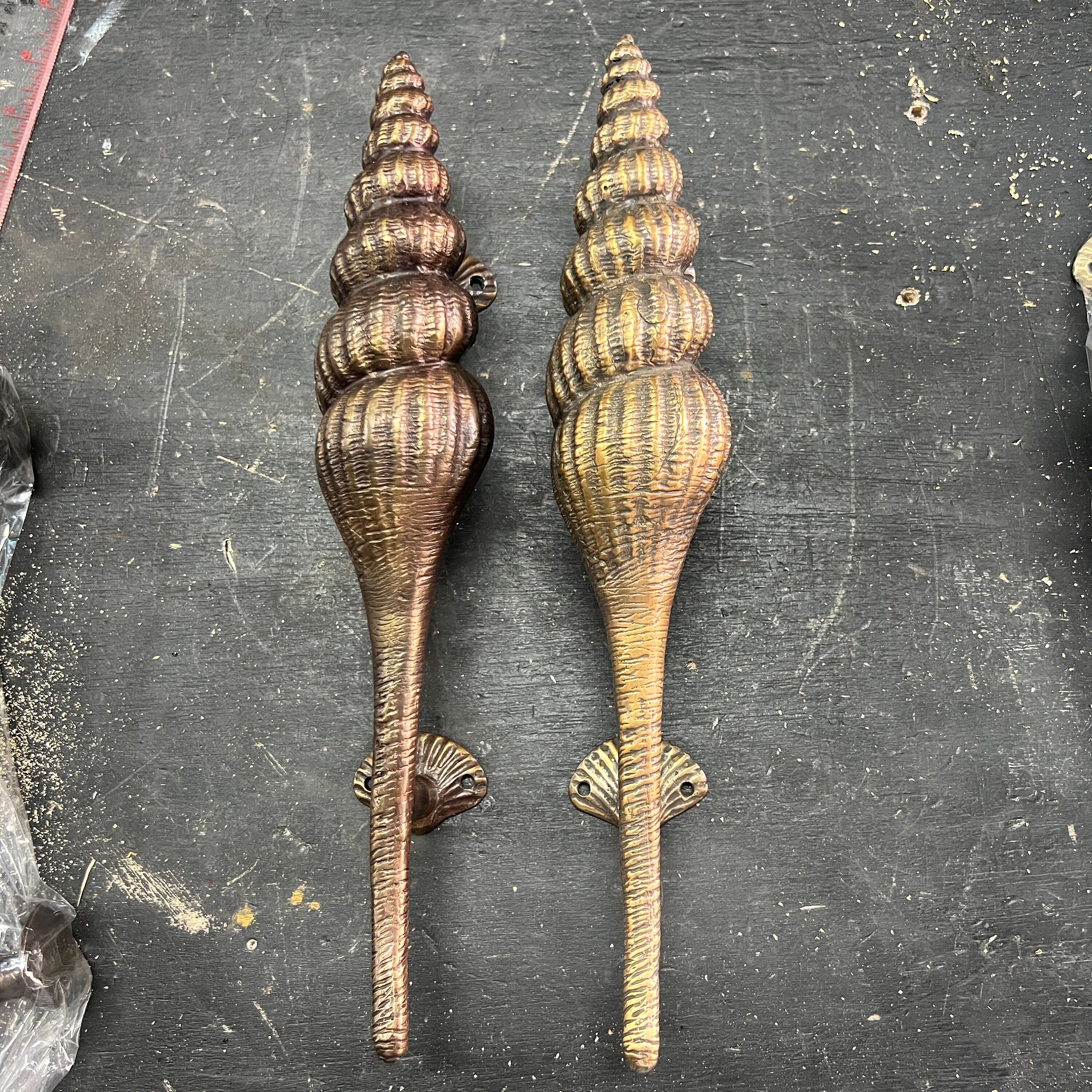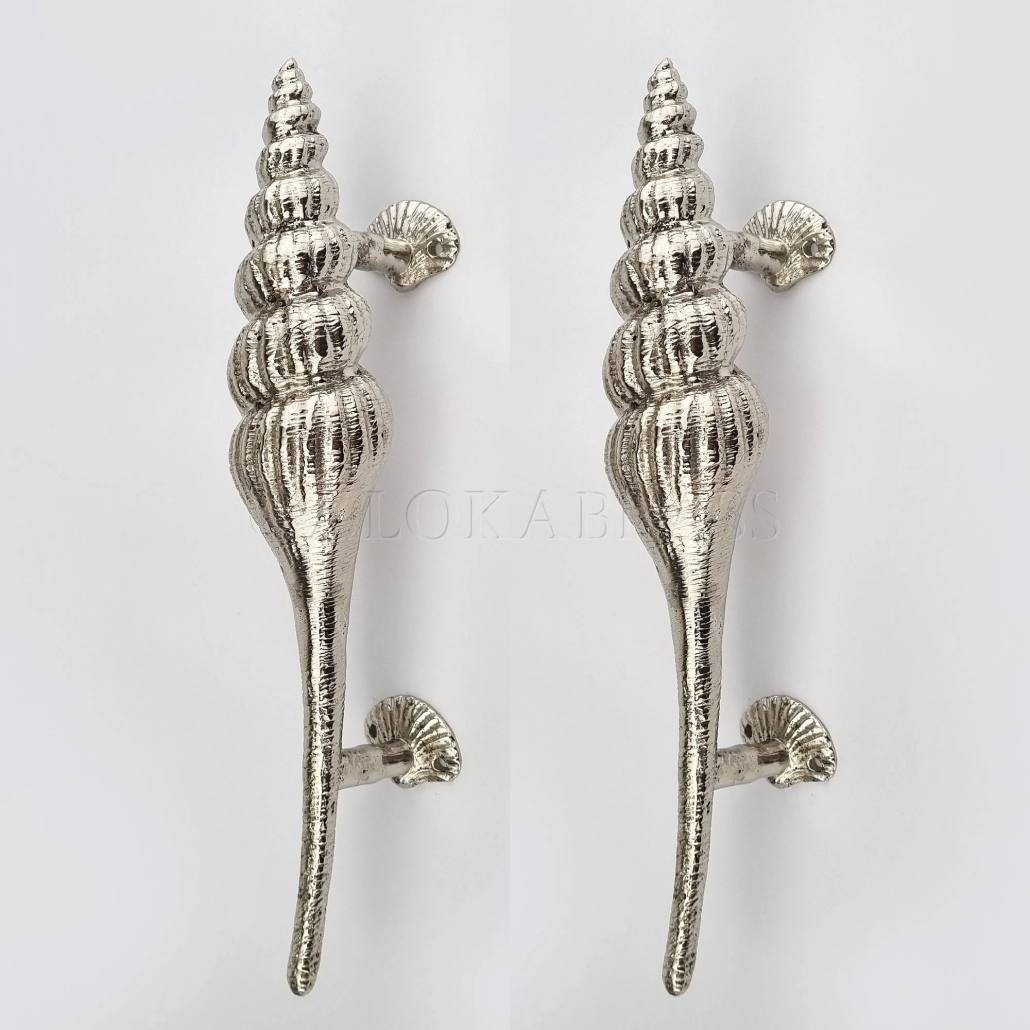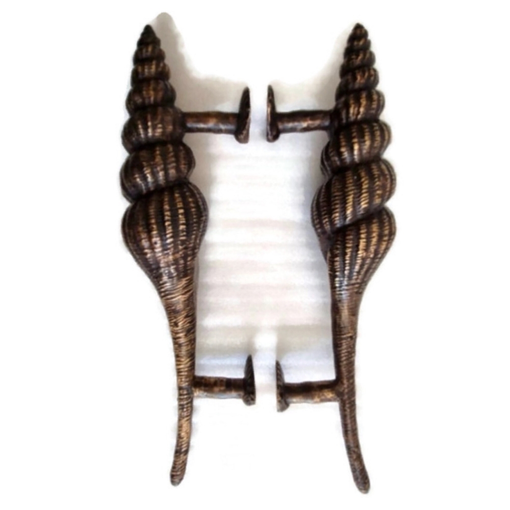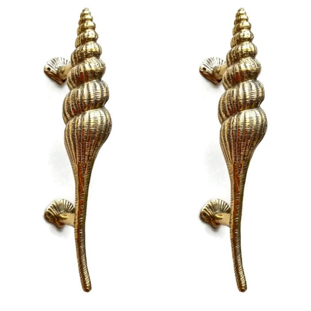 2 Large Shell Shape Curvy seaside hollow Brass Polished Door Pull Handle 12.1/2″ Grab Old Style 32cm